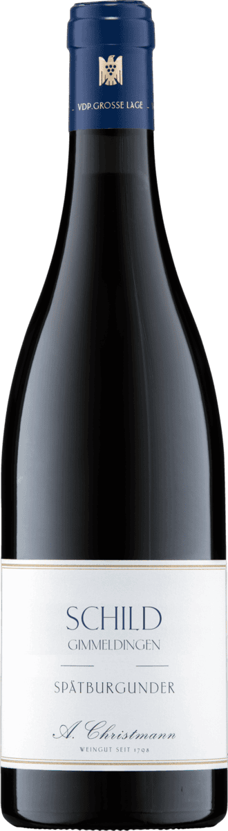 Im Schild wächst ausschließlich Spätburgunder. Die ursprüngliche Pflanzung stammt aus dem Jahr 2011, 2021 wurde ein Teil der Reben umveredelt. Der Wein zeigt sich entsprechend präzise, vielschichtig und kalkmineralisch gezeichnet – mit Druck, Finesse und einer charakteristischen Reife.